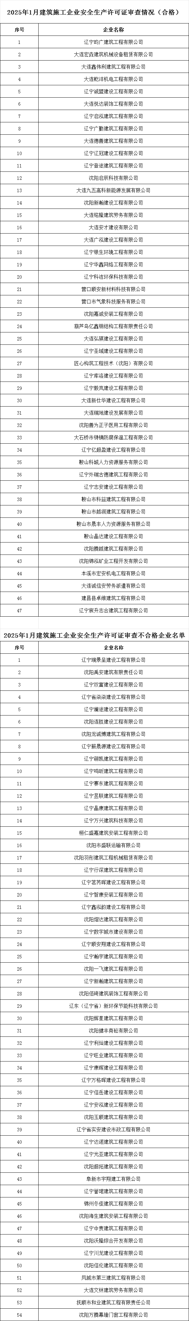 遼寧住建廳發布關于2025年1月建筑施工企業安全生產許可證(新辦)審查情況的公示